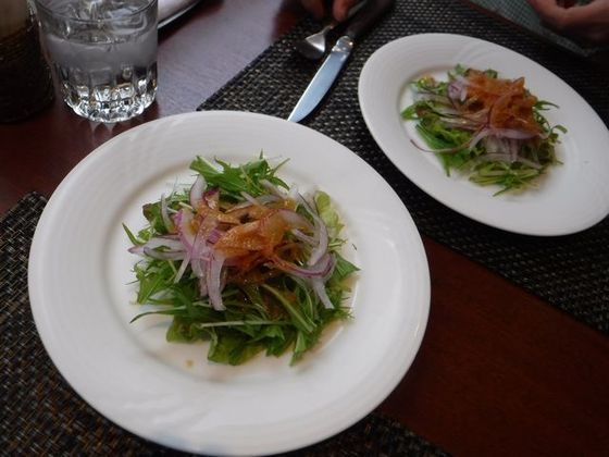 サラダは今日はレッドオニオン。前回はダイコンでした。