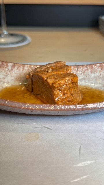 ネタは厚切りで、魚の旨味がしっかり感じられるのが特徴。赤酢を使用したシャリはほろっと口の中でほどけ、ネタとの調和が絶妙です。握りの合間に出されるおつまみも個性的で、藁焼きやあん肝などが特に印象的です。素材の食べ頃を見極めた丁寧な仕事が施され、食べるたびに驚きと感動を味わえます。