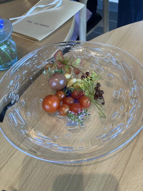 5品目は、パン。トマトやベリーが、ハチミツの上に載っている一品。ハチミツ含めて自家製なのかな。上品な味と、獲れたての香りで、美味しいです。