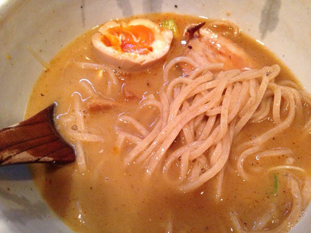 これまためちゃくちゃ大好きならーめん屋さんです。ぼくはお蕎麦がだいすきです、ほんとはらーめんと同じくらいお蕎麦がすきです。ただお蕎麦にはらーめんほどのバリエーションがないので、お蕎麦巡りとかはしたことないです(∵)そんなぼくにぴったりなのが蕎麦とらーめんのハーフみたいならーめんを食せるこちらの高倉二条さんです。とにかくおいしいです、麺もスープも具もぜんぶおいしい、センスも秀逸です、ニンニクの芽とか、入ってるあたりめちゃくちゃありです。