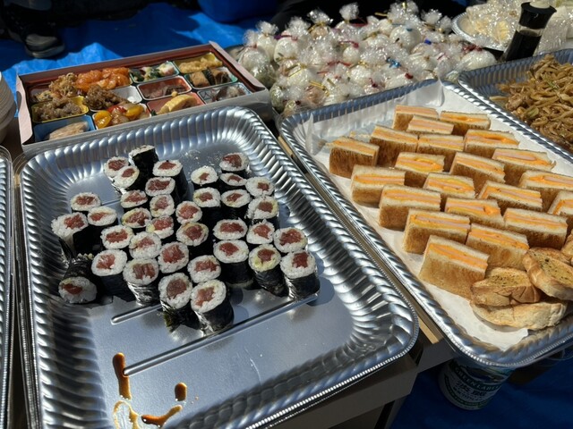 大将が作ってくれた鉄華巻きと、クロックムッシュ、奥のおにぎりパラダイスは私が担当♡