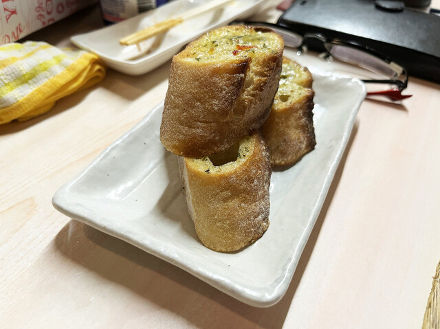 にんにく苦手やから(味が嫌いとかじゃないけどね)私は食べへんけど、ガーリックトーストはめちゃくちゃ人気の一品やねんで~!