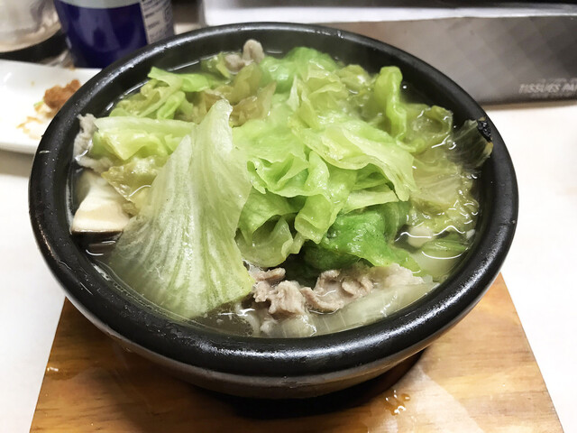 豚肉とレタスが主なシンプルなお鍋、お出汁がこれまた美味しいねん~♡
