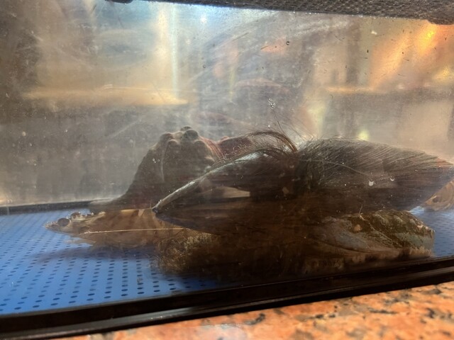 本来、ネタケースの前がいいんやけど、なんかこの水槽前のかどっこがめっちゃ落ち着くし、しっくりきてもうたからなっ♡