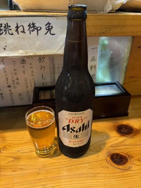 とりあえずビールを注文し、いつもカウンターに並んでいる日替わりメニューから2品チョイスしました♪