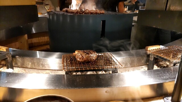 注文はスタンダードメニューである、ハンバーグ3つセット税込1,600円。カウンター席に囲まれた中央キッチンから(お客さんのペースに合わせて)出来立てのハンバーグが1つずつ提供されます。