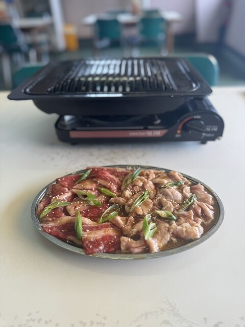 瓶ビール、ホルモン定食、バラ焼、焼きそば