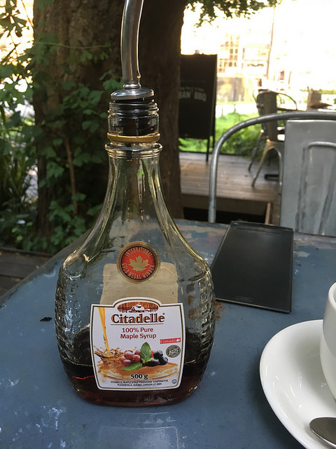 今度は、メープルシロップをかけていただきます。