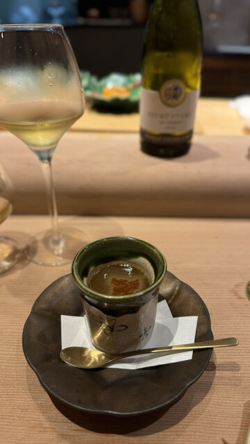 この日、友達と大絶賛したのがこちらの「トリュフ味噌の柚釜焼き」です。濃厚なトリュフ味噌の中には、ラ・フランスや無花果、帆立が入っていて、甘くて非常に日本酒とよく合う風味。もう一度食べたいと思う忘れられない味でした。