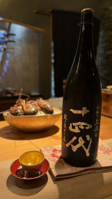 お味噌の残っている甲羅に日本酒を入れて、いただきました。おぶねさんは、食事だけではなくドリンクにも力を入れていて、田崎真也さんセレクトのワインや日本酒好きなら誰もが知っている十四代の龍の落とし子等、びっくりするようなラインナップです。