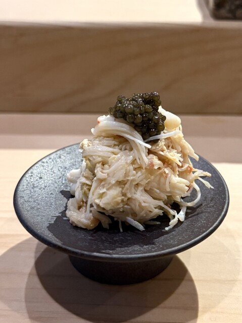 ・毛蟹とキャビア:毛蟹の身は驚くほどみずみずしく、キャビアとの組み合わせがなんとも贅沢。