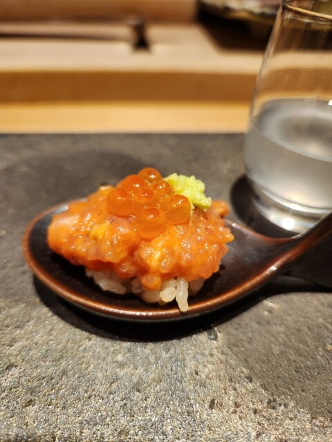 麻布十番4番出口から徒歩4分ほどのところにある隠れ家的会員制の鮨屋になります。外観からは全く分かりませんでした。会員の方は会員カードをかざして入店出来るので...
