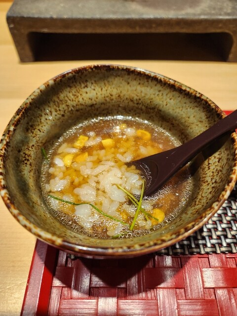 玉蜀黍の炊き込みご飯と帆立貝出汁