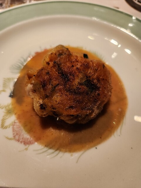 自家製の衣で焼いた白子のムニエル。中はトロトロでネパールの胡椒が隠し味。紀州南高梅のソースで。