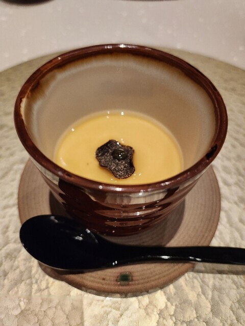 トリュフ、トリュフオイル、コンソメ餡のトリュフ香る茶碗蒸し。