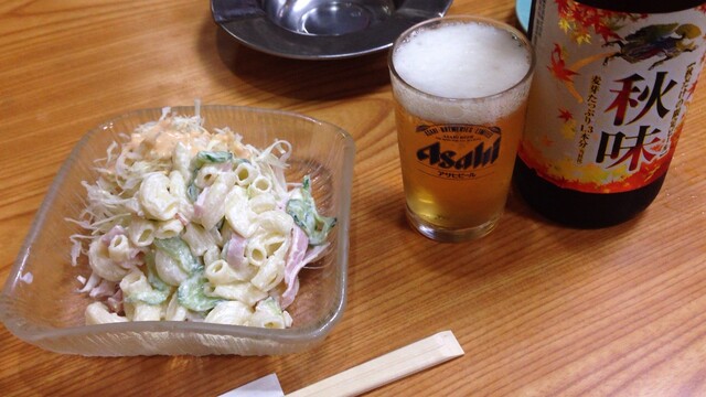 2015/10/09 たらこオムレツ、マカロニサラダ、焼酎セット