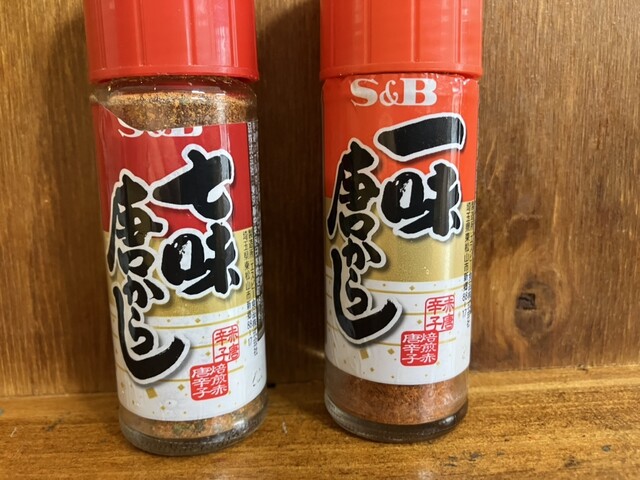私はうどんやそばには七味で一振りで山椒が出てくるとなんかいいことありそうな気さえし、一味は調理用でという感覚ですが、こちらはテーブルに七味も一味もあって誠実さが伝わります。