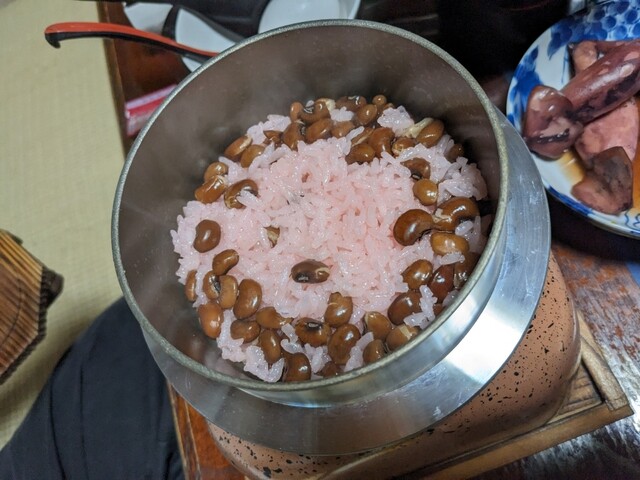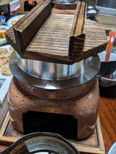 すき焼きと羽釜御飯は食べる直前に火を入れておくので、温かい炊きたてのご飯とすき焼きが食べられます。