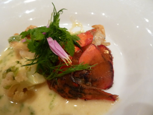 オマール海老のロティ(ロースト)、海藻入り白ワインソース。