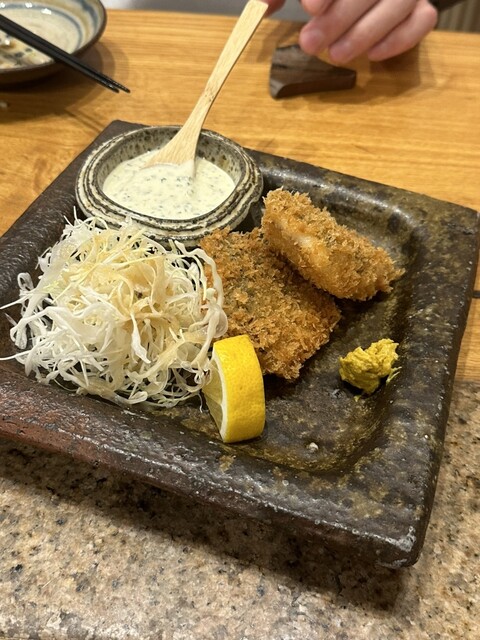 揚げたての唐揚げと、鯵フライも熱々で美味しすぎる。