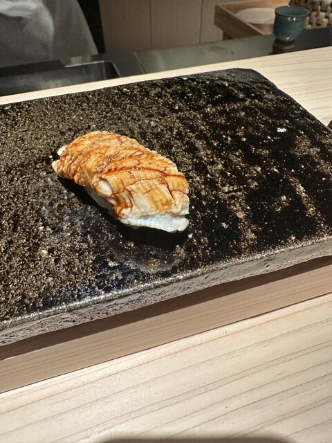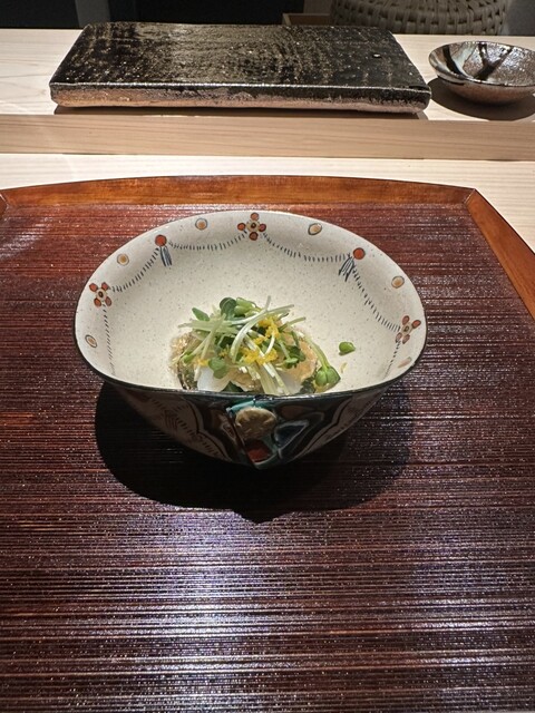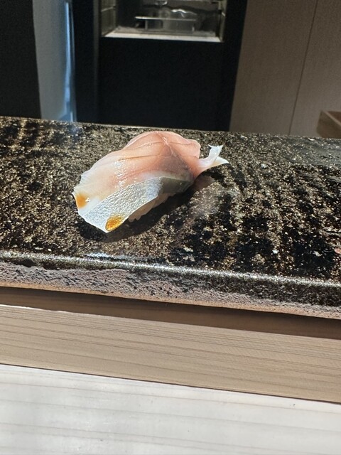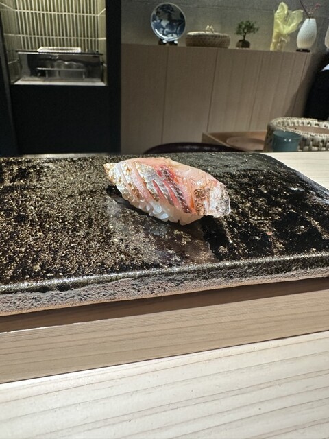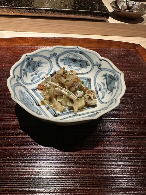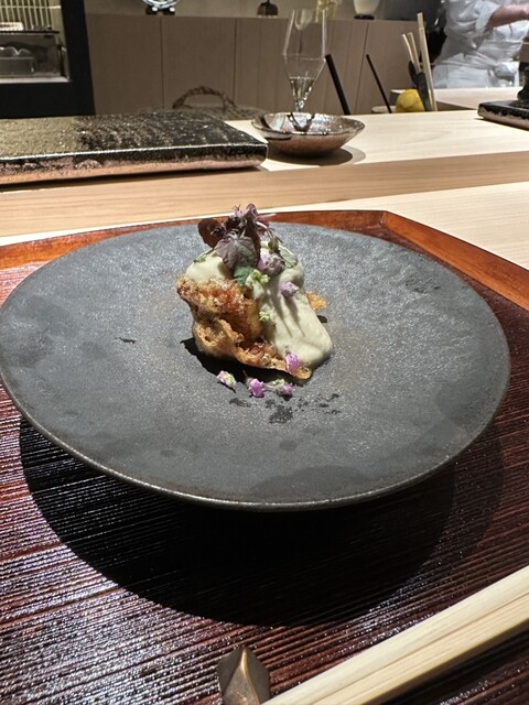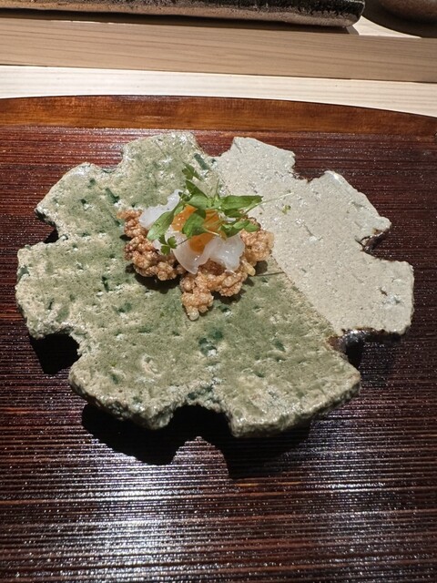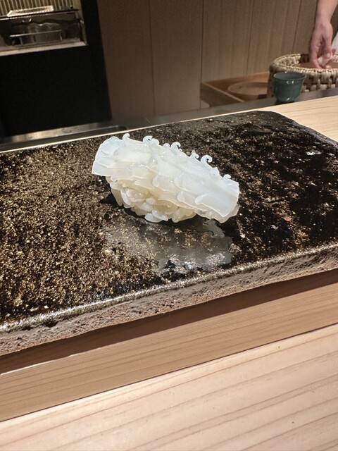 菊芋でとったお出汁からスタートし、握りがくるまでの前菜はフレンチを感じさせる盛り付けもあり、見た目もとても美しく、お味も上品で優しい味でした。デザートのほうじ茶のパンナコッタも絶品でした。