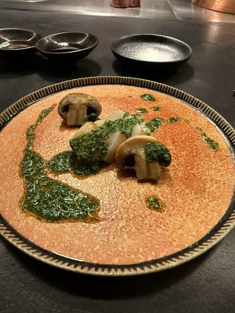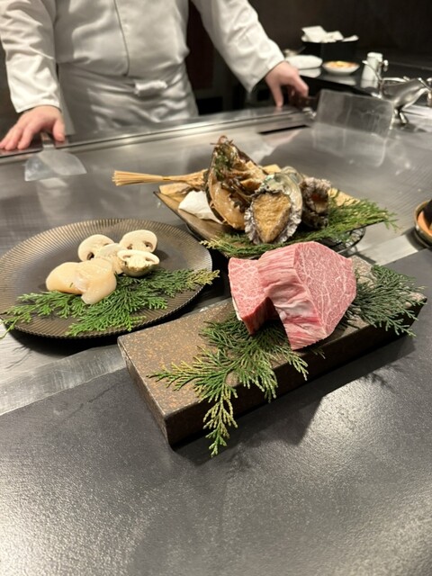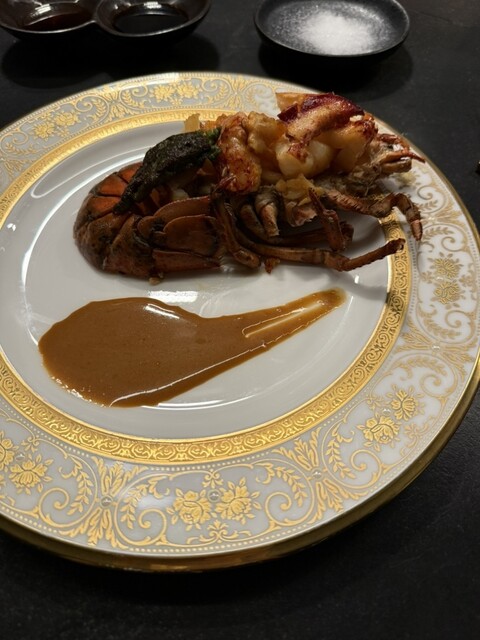 サラダ、ホタテ、オマール、鮑と贅沢三昧しました。