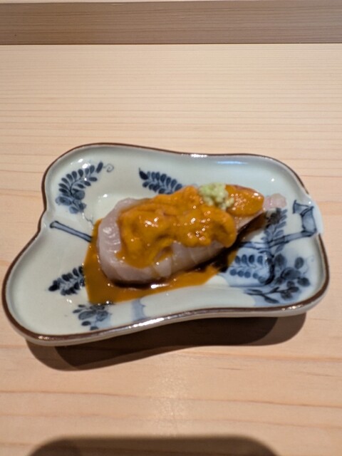 糸島の鰆に北海道バフン雲丹の醤油を乗せて