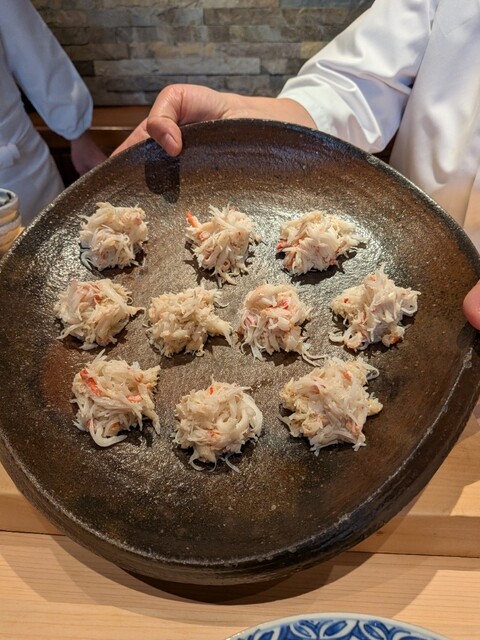 松葉蟹 蟹味噌をかけて手渡し