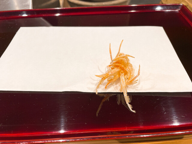 ズワイガニの繊細な旨みが卵に溶け込み、天ぷらの前に落ち着く味わいです。