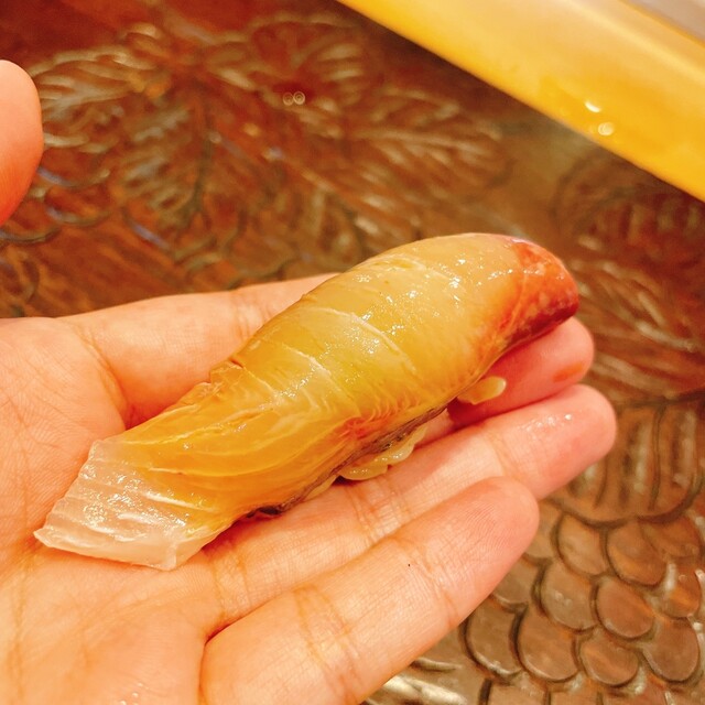 天然シマアジのお鮨もシマアジの旨みと弾力に感動です。海鮮の活かし方が素晴らしいですね。