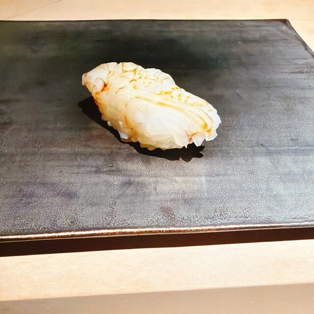 一部に火を入れて、その部分とレアな部分の食感の違いを楽しめます。このスタイルは奴寿司さんのスタイルで、海老の甘さも印象的でした。車海老はやっぱり美味しいですね!
