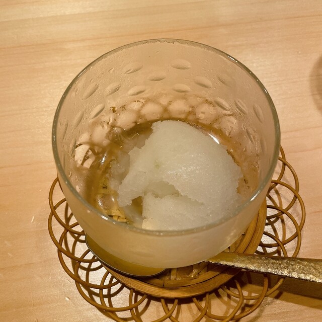 最後はさっぱりとしたスダチのシャーベットでコースは終わります。