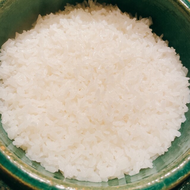 大将の地元の従兄弟が作られた天日干しのお米をアジの胡麻和えと頂きます。お米は甘みが素晴らしく、アジの胡麻和えとの相性はもちろん抜群です。おかわりがどんどん進むお米で、山椒じゃこや蘭王の卵かけご飯で無限に食べられそうでした笑