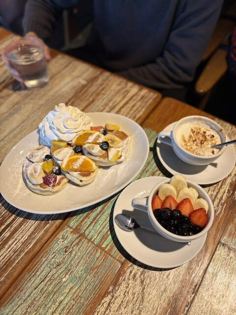 コナズ珈琲 小平店を利用しました。パンケーキ、アサイーボウル、キャラメルマキアートを注文。どれも安定して美味しく、南国感のあるメニューを楽しめました。店内は席間が広く、ゆったり過ごせるのが嬉しいポイント。店員さんはハキハキしていて感じの良い方が多く、全体的に明るい雰囲気でした。食事も空間も含めて、ゆっくりしたい時に使いやすいお店だと思います。
