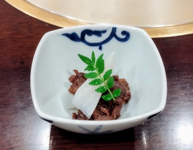 最初に口取りとして、牛時雨煮と山ウド が来ました。よく煮込まれていて、少し歯ごたえがあって、添えられている山ウドが良い味を出しています。