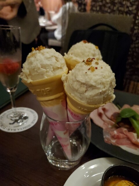 食事はおつまみ程度であまり印象残ってないのですがアイスコーンにのったポテトサラダは可愛かったです。