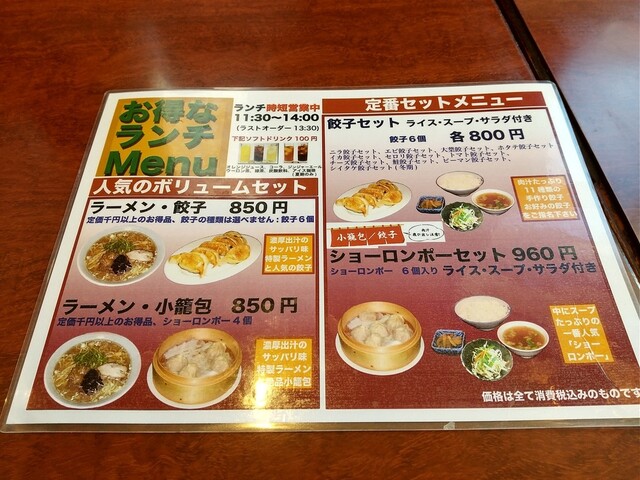 「ラーメン・小籠包ランチ」&「ラーメン・餃子ランチ」…「ラーメン」はあっさり目、でも風味がしっかりとあって良い脇役