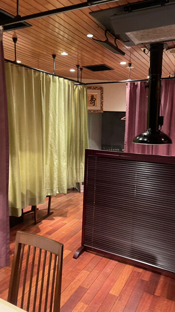 掘りごたつタイプのお座敷にカーテンで仕切られる半個室のテーブル席も有り