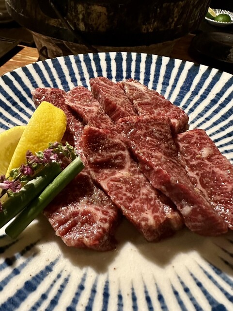 サッと炙って食べる和牛ザブトンは口の中でとろけるෆ̈