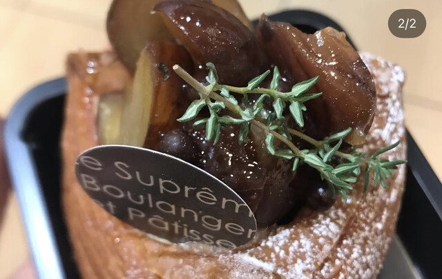 キャラメルサレはル・シュプレームを代表するパン。キャラメルで固めたナッツがデニッシュの上に乗ってて、最高の一品。マスト。