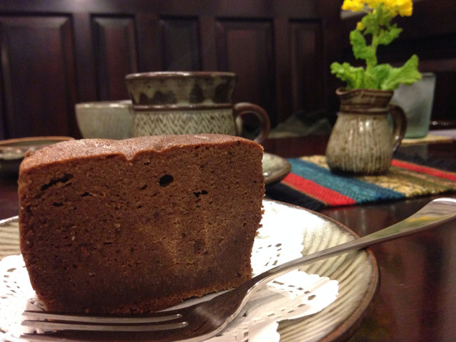チョコレートの味は控えめで、お酒のきいた、コーヒーによく合うケーキだった。