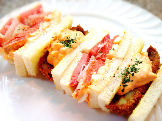 コロッケとサーモンのサンドっぽい。