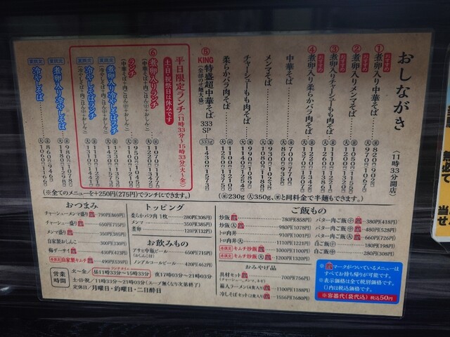 最新の情報とは異なる可能性がありますので、お店の方にご確認ください。詳しくはこちら