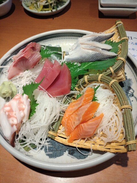 お刺し身、茄子と豚肉の生姜焼き、焼きとんなどどれもおいしかったです。