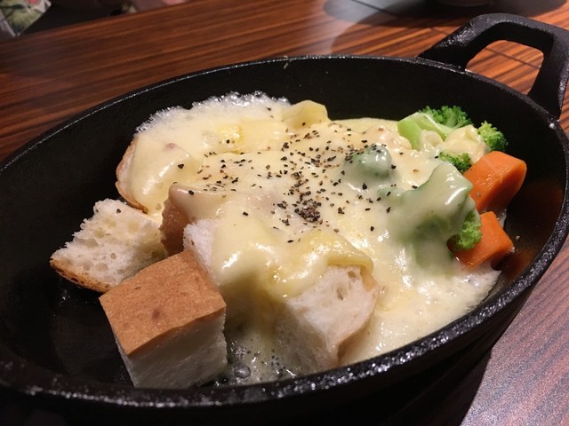 バケットと蒸し野菜の上にたっぷりチーズ