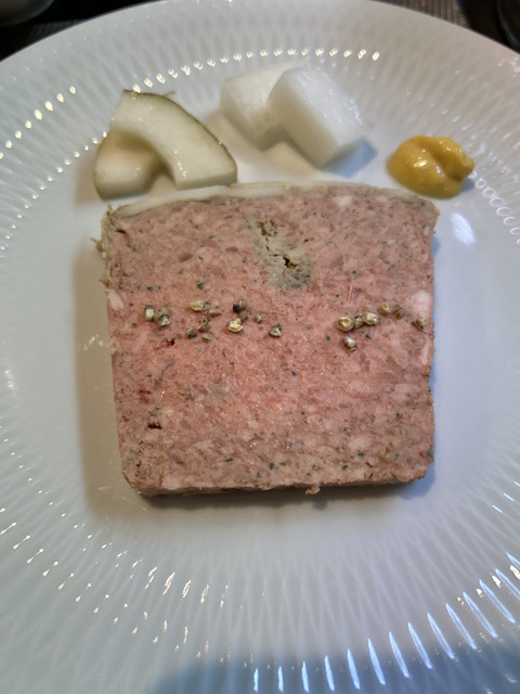 この店としては珍しいスタイル。たまたま近所のケータリングのオーダーが入ったとかで、盛り合わせで出していただきました。ブロッコリーとズワイガニのフラン、自家製スモークサーモン、豚肉のリエット。生マッシュルームが添えられるのがこの店らしい。