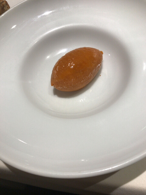 冬が旬の高級魚クロムツが登場。身はホロホロとして程よい脂と旨味があります。通常のハナビラタケに加えてモリーユも添えてくれました。モリーユはクリーム系のソースとの相性が抜群に良い。春キノコのイメージがあるモリーユですが、今の季節はチベット産の栽培物がとても品質が良いとのこと。