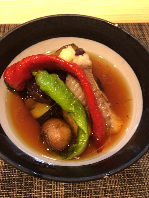 5品+御食事のスタイルに変わり無し。とはいえ、先月とは食材がほぼ入れ替わっているので楽しい。酒肴2品→お造り→肉→揚げ出汁という流れが飲兵衛のツボを突きまくりますw