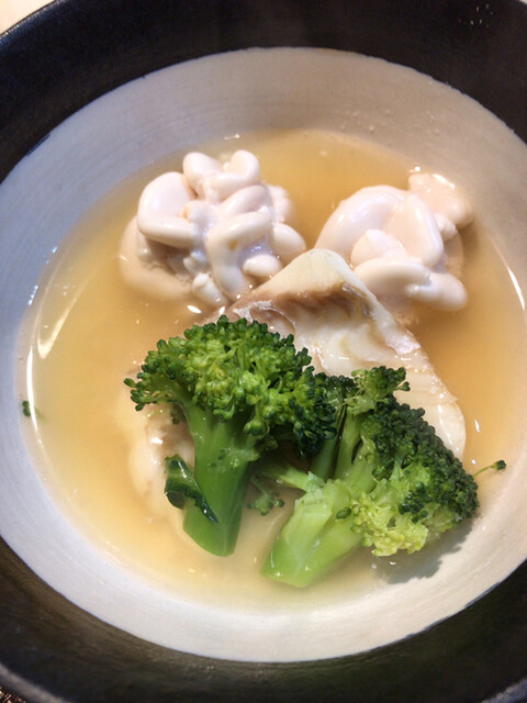 ヤリイカ煮付けは肝の旨味が濃厚。鮪のコメカミはけっこう肉肉しい。まき網漁より上質とされるはえ縄漁による鮪に、希少なホシガレイが美味でした。最後の2品で鱈尽くしが楽しい。今回は御食事まで上品でした。