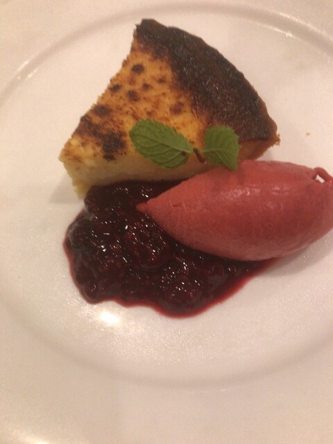 グラニテに続いて、デザートはフランボワーズのアイスとチーズケーキ。必死で食べました。美味しかったです。
